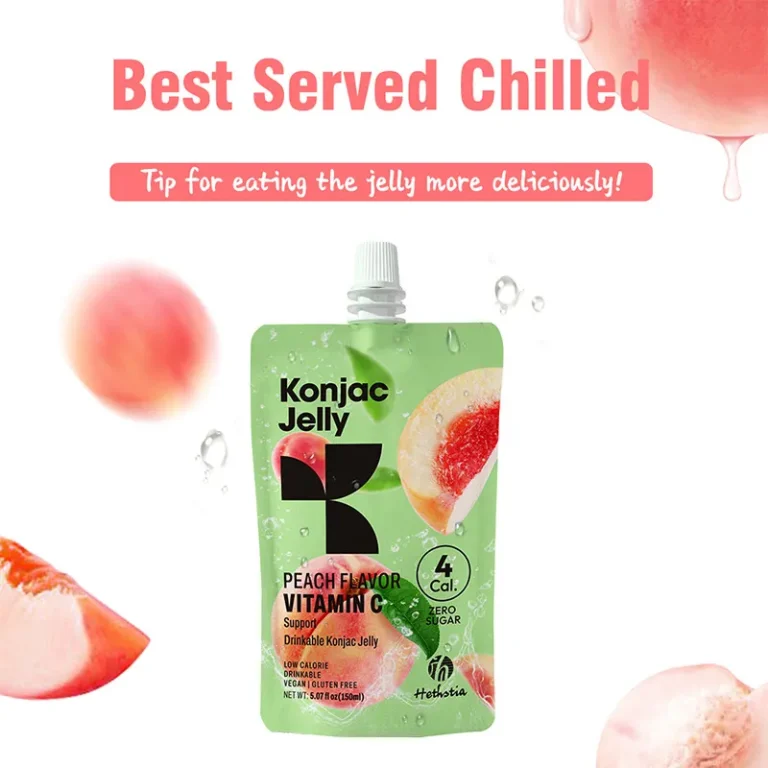 питьевое желе конняку со вкусом персика — отличный выбор для людей, придерживающихся низкокалорийной диеты.